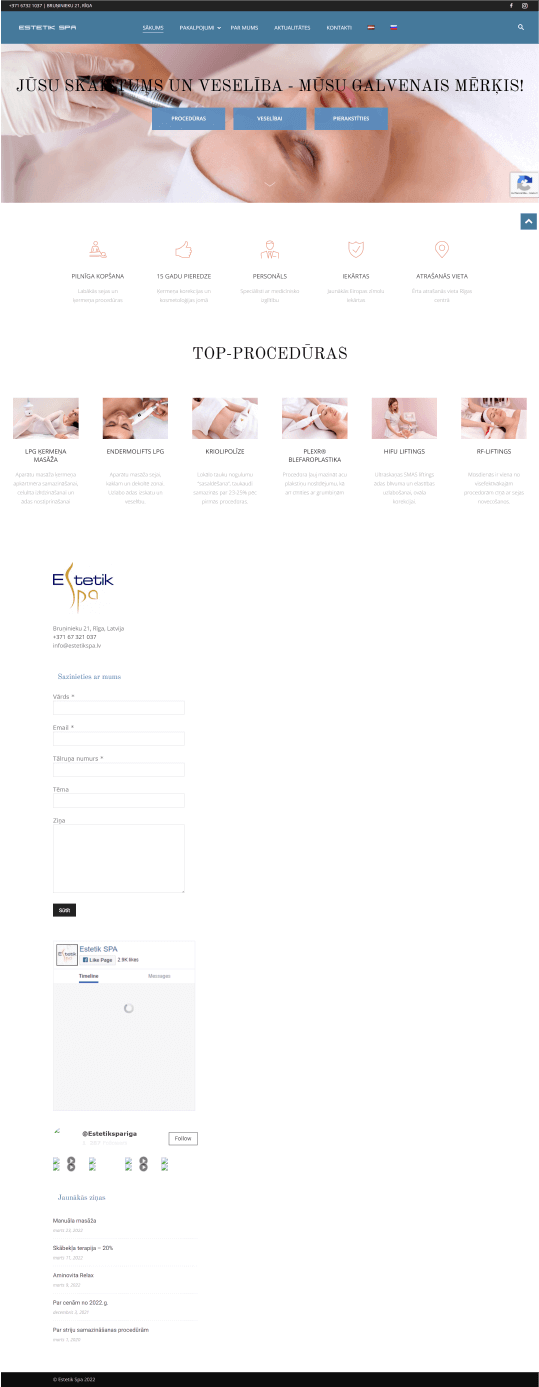 Salons ir aprīkots ar pasaules vadošo ražotāju jaunākajām iekārtām kosmetoloģijas, figūras korekcijā un masāžu jomā. Pie mums jūs varat veikt dažādas klasiskās procedūras vai arī jaunākās mūsdienu High-Tech tehnoloģijas sejas un ķermeņa kopšanā.